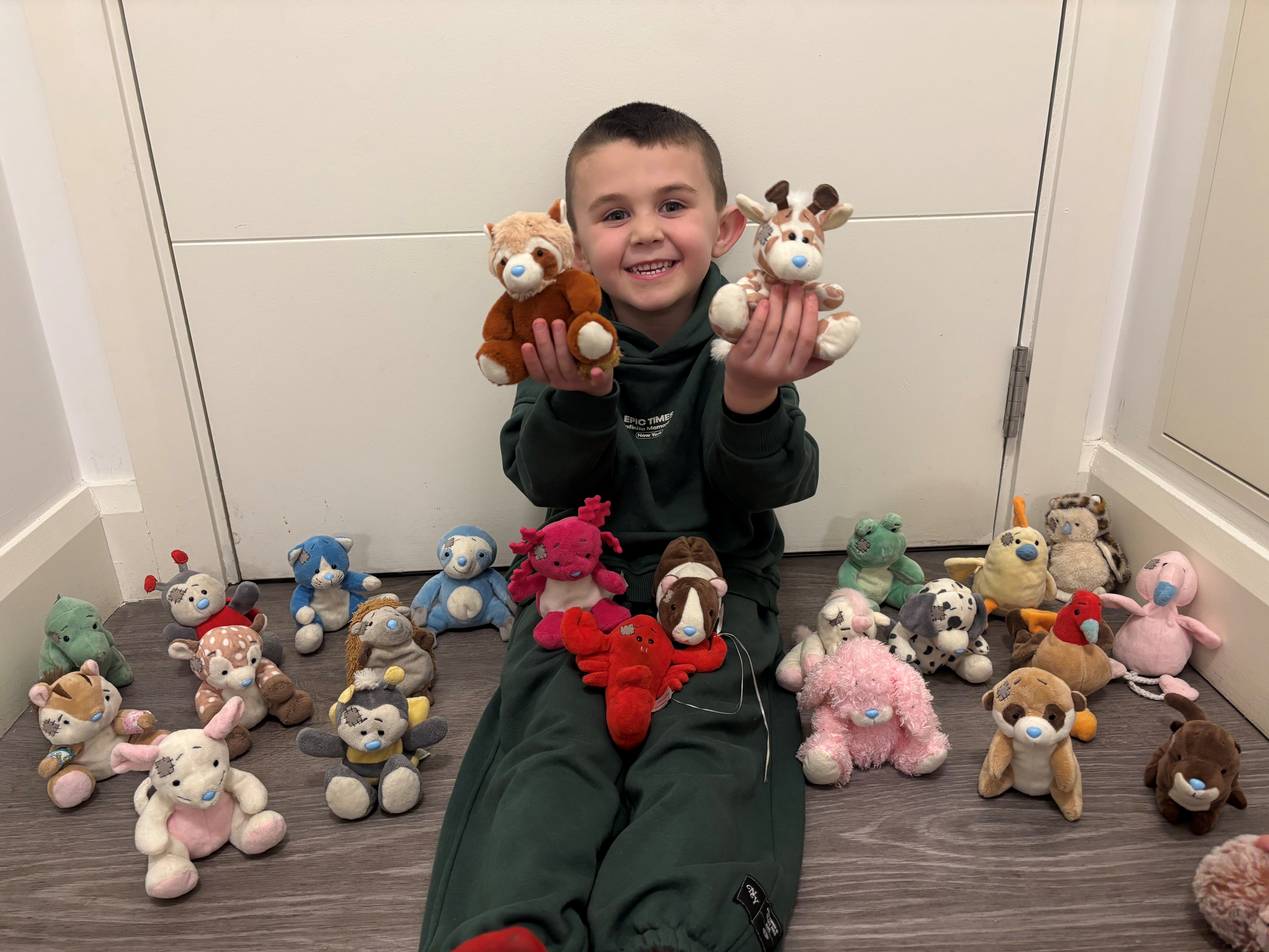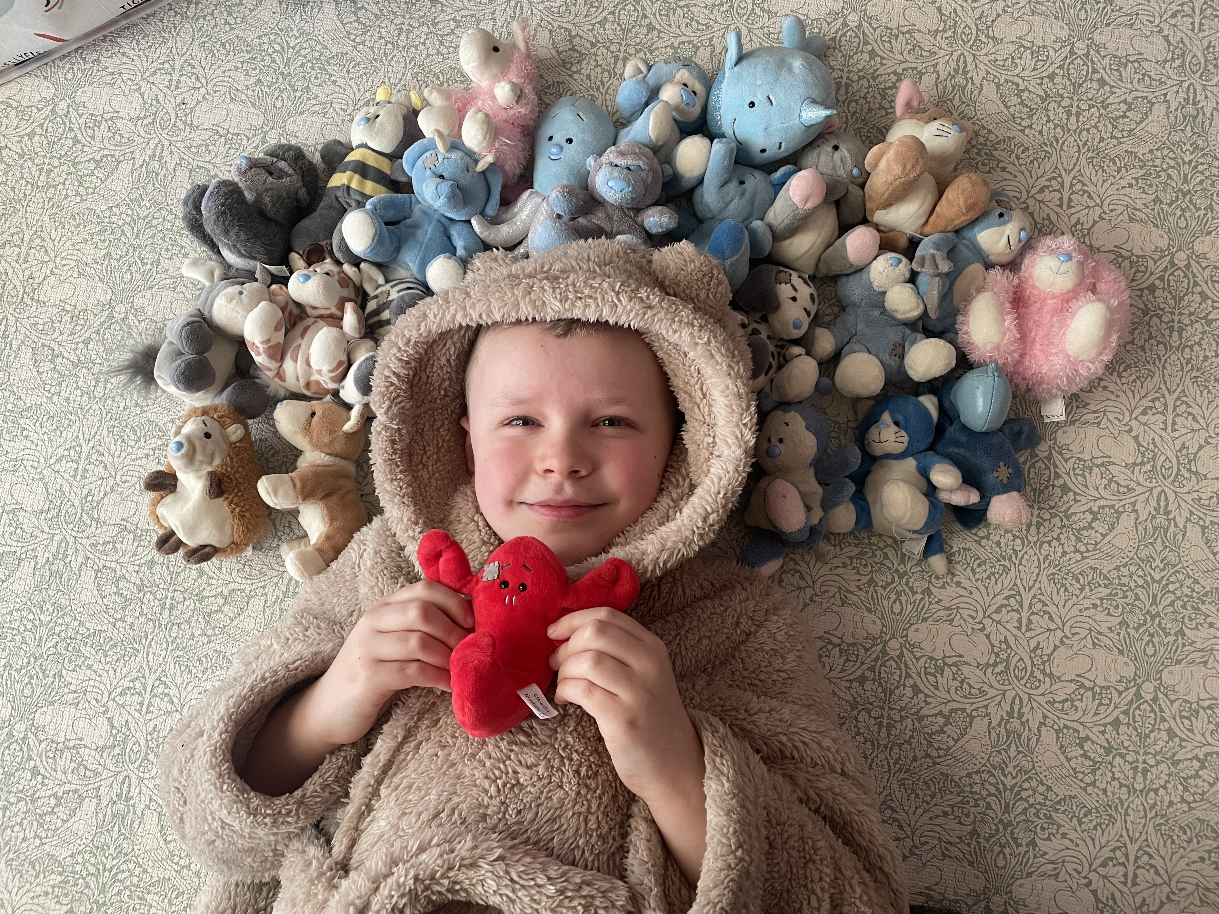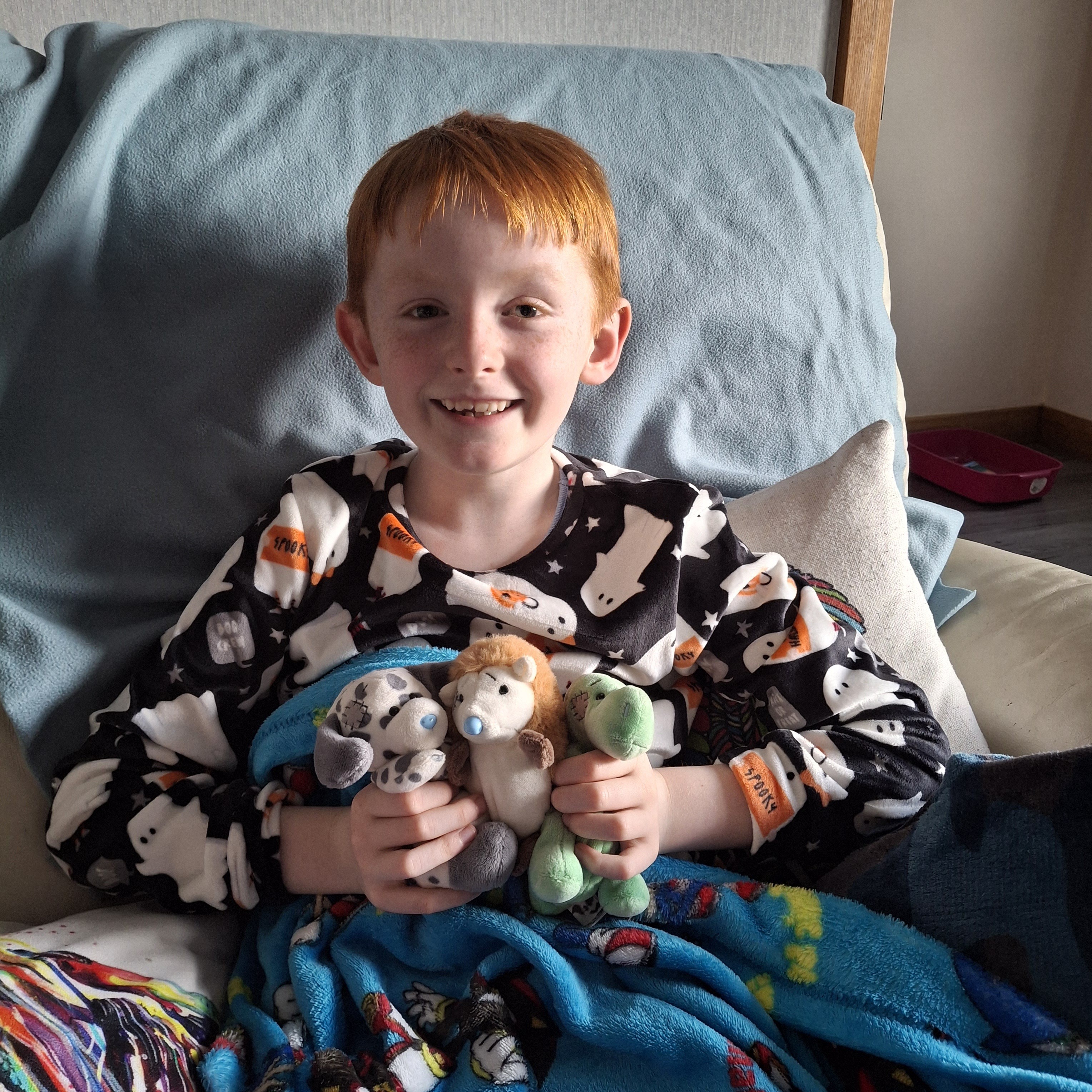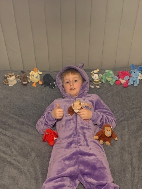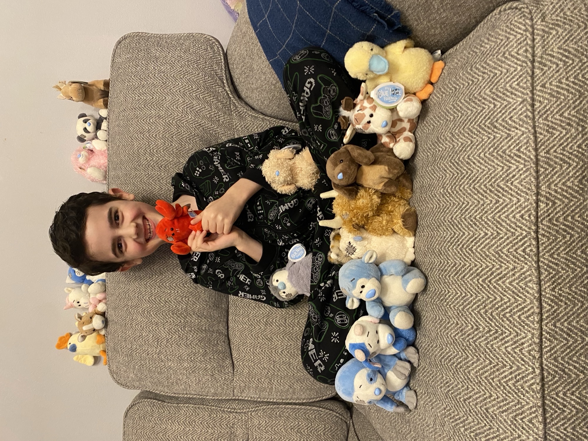 Snuggle time with Matthew and his Friends