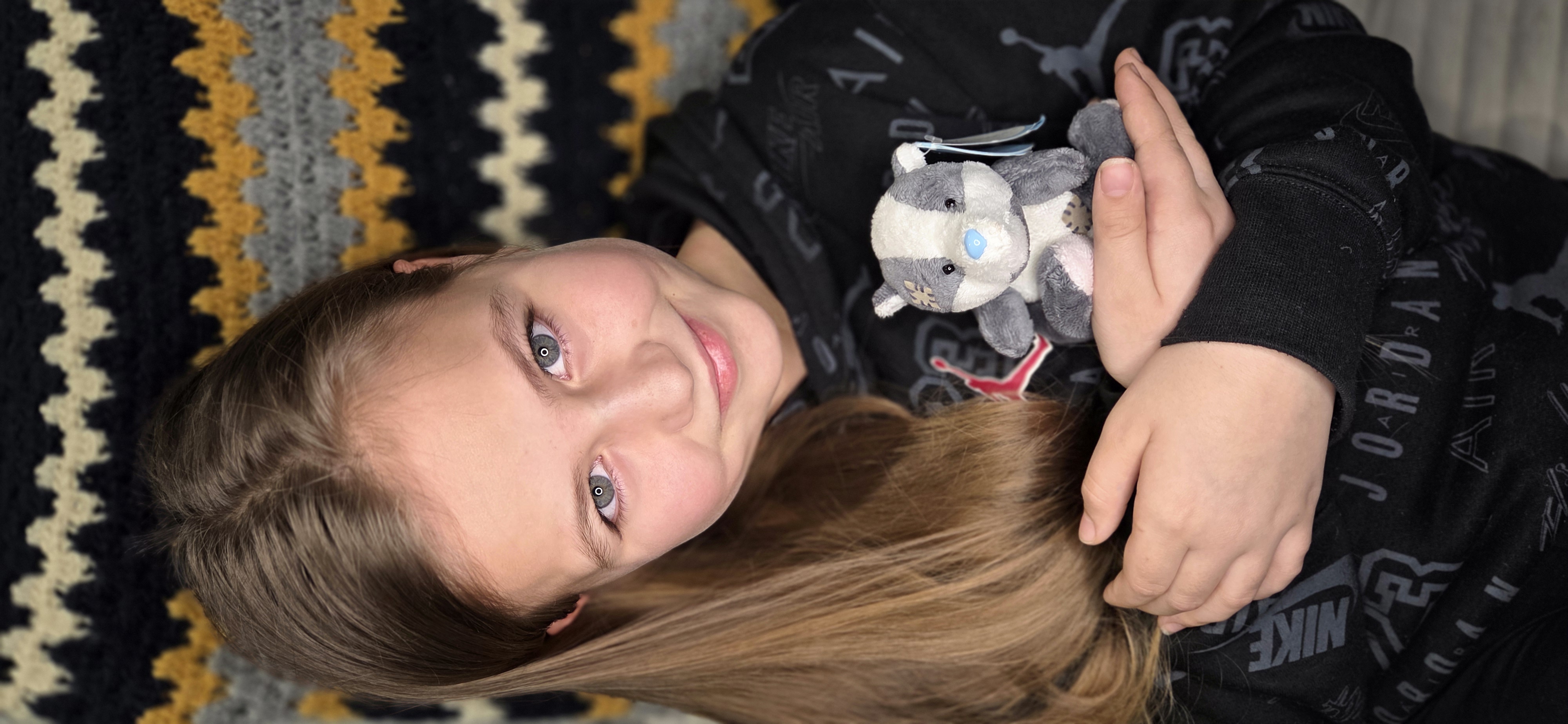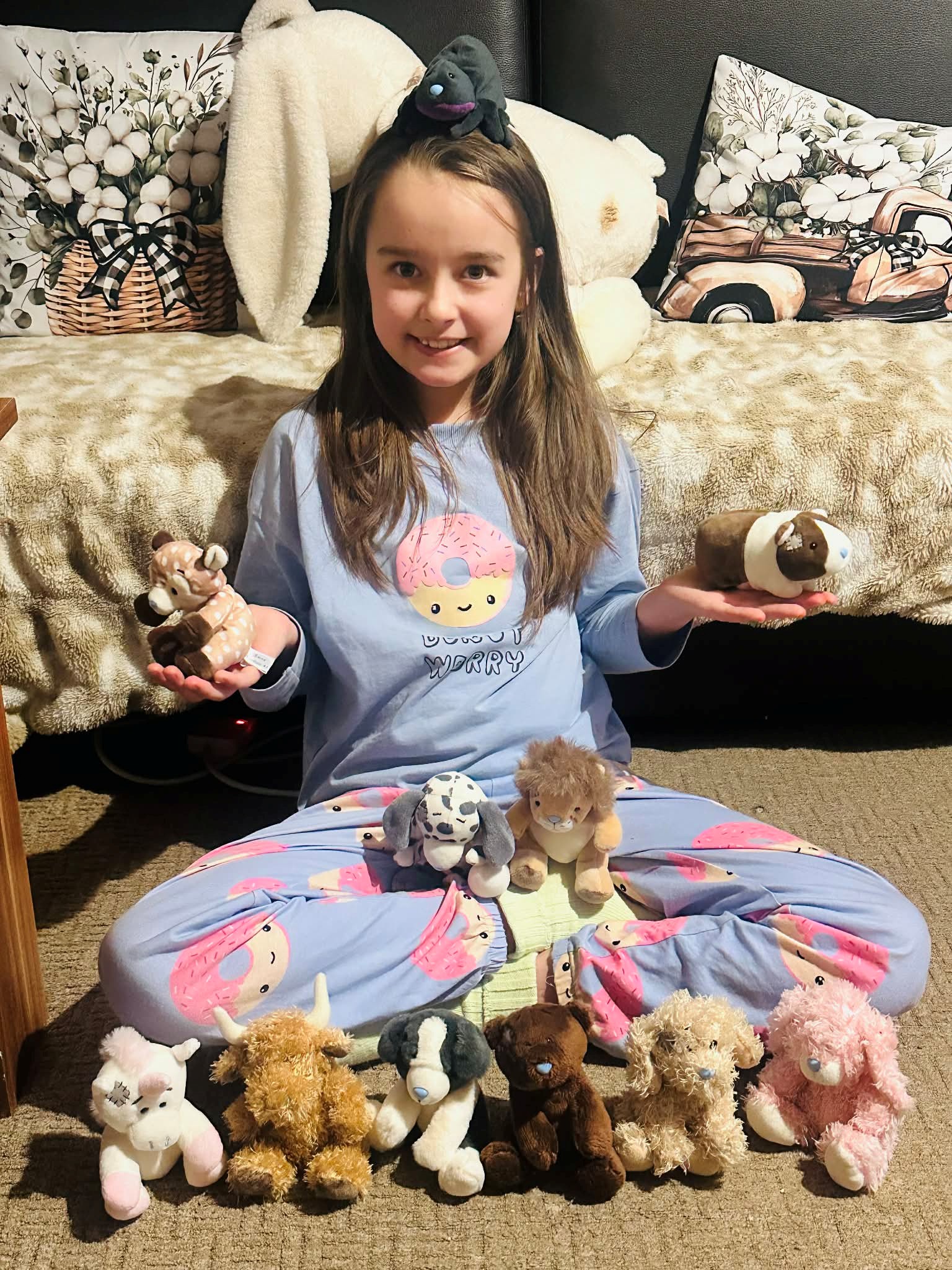 Cuddle time for Daisy and her collection