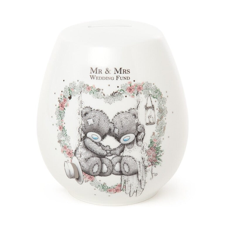 This ceramic money box features a beautiful Tatty Teddy bride & groom illustration with floral garlands and holographic confetti. The perfect engagement gift for the happy couple, and makes a lovely keepsake for after the big day.